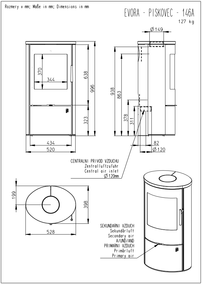- średnica dolotu powietrza: 120 mm