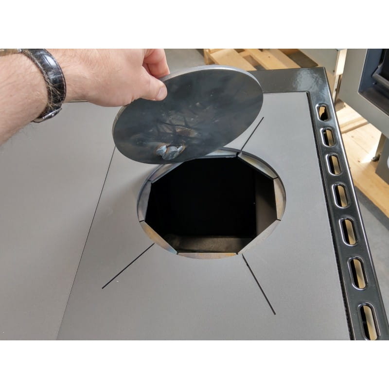 - możliwość podłączenia do komina od tyłu lub z boku, ewentualnie z płyty grzewczej