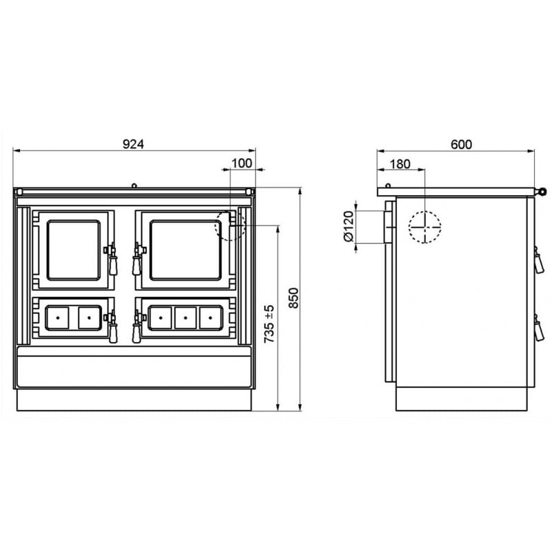 Wysokość do dolnej krawędzi przewodu dymowego : 735 ± 5 mm