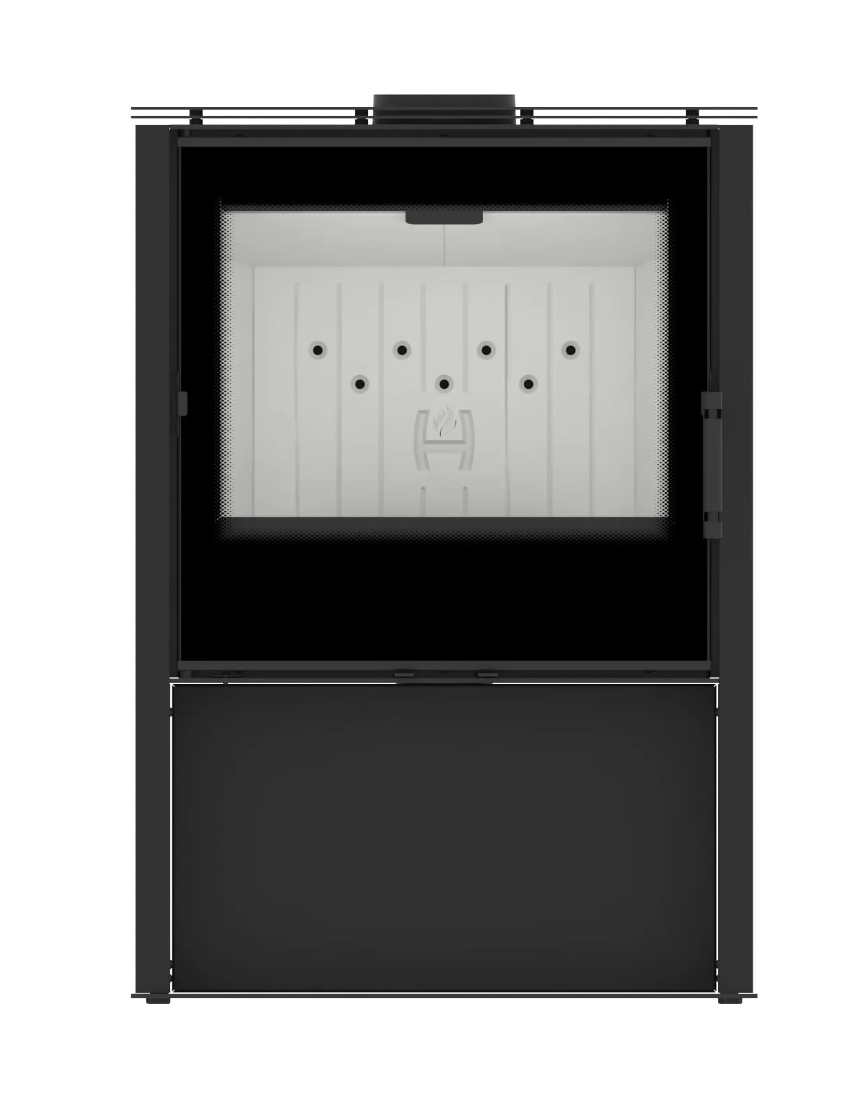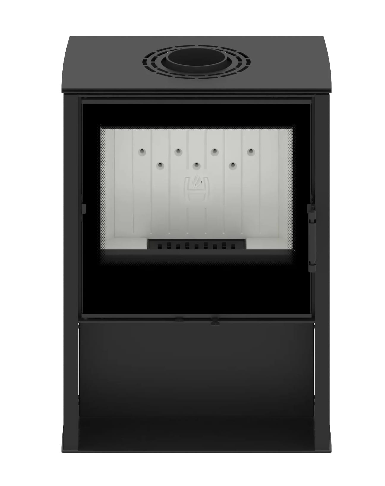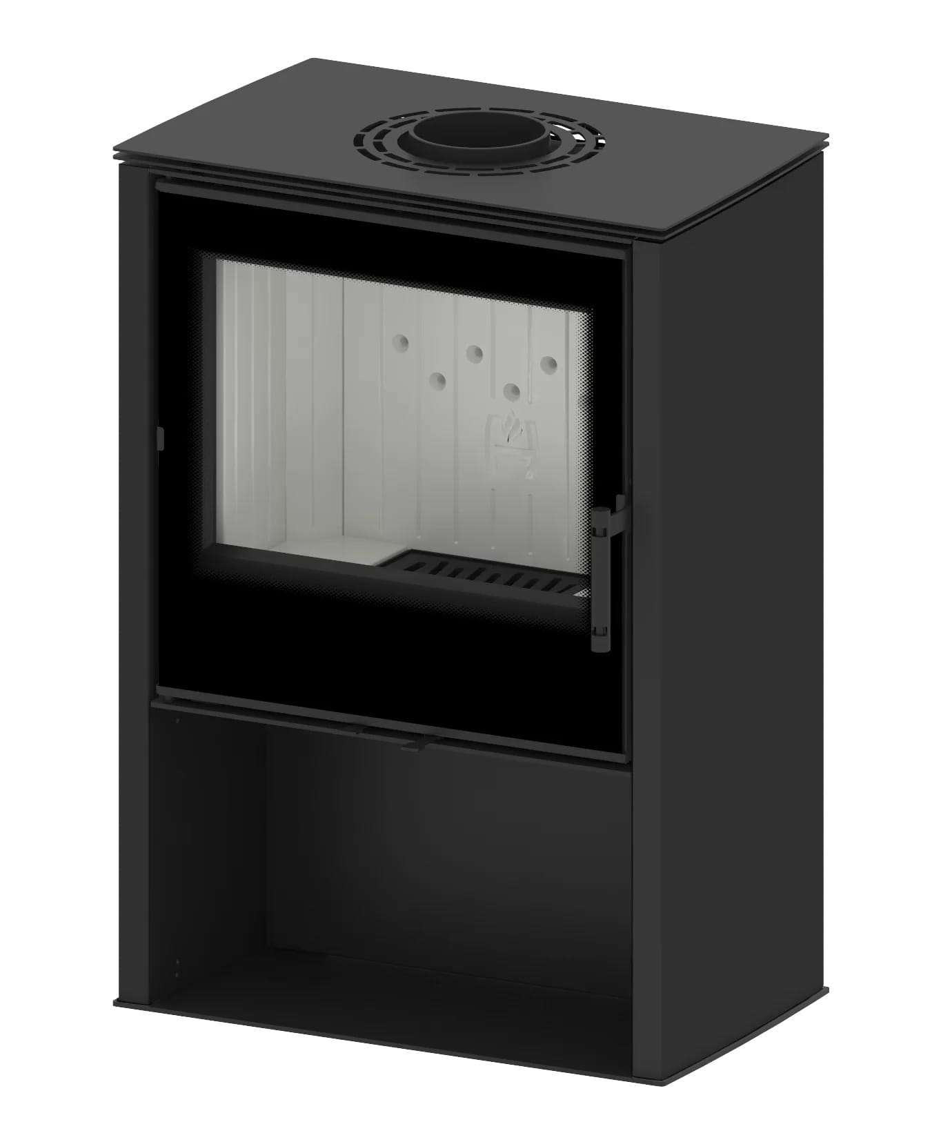 Zastosowanie wytrzymałego, żeliwnego rusztu gwarantuje długą żywotność. Bezpośrednio pod rusztem znajduje się łatwo demontowalny popielnik charakteryzujący się ponadprzeciętną objętością. Konstrukcja kominka wolnostojącego LUPO M umożliwia montaż wylotu spalin zarówno do tylnej, jak i górnej ściany.