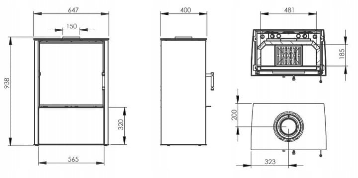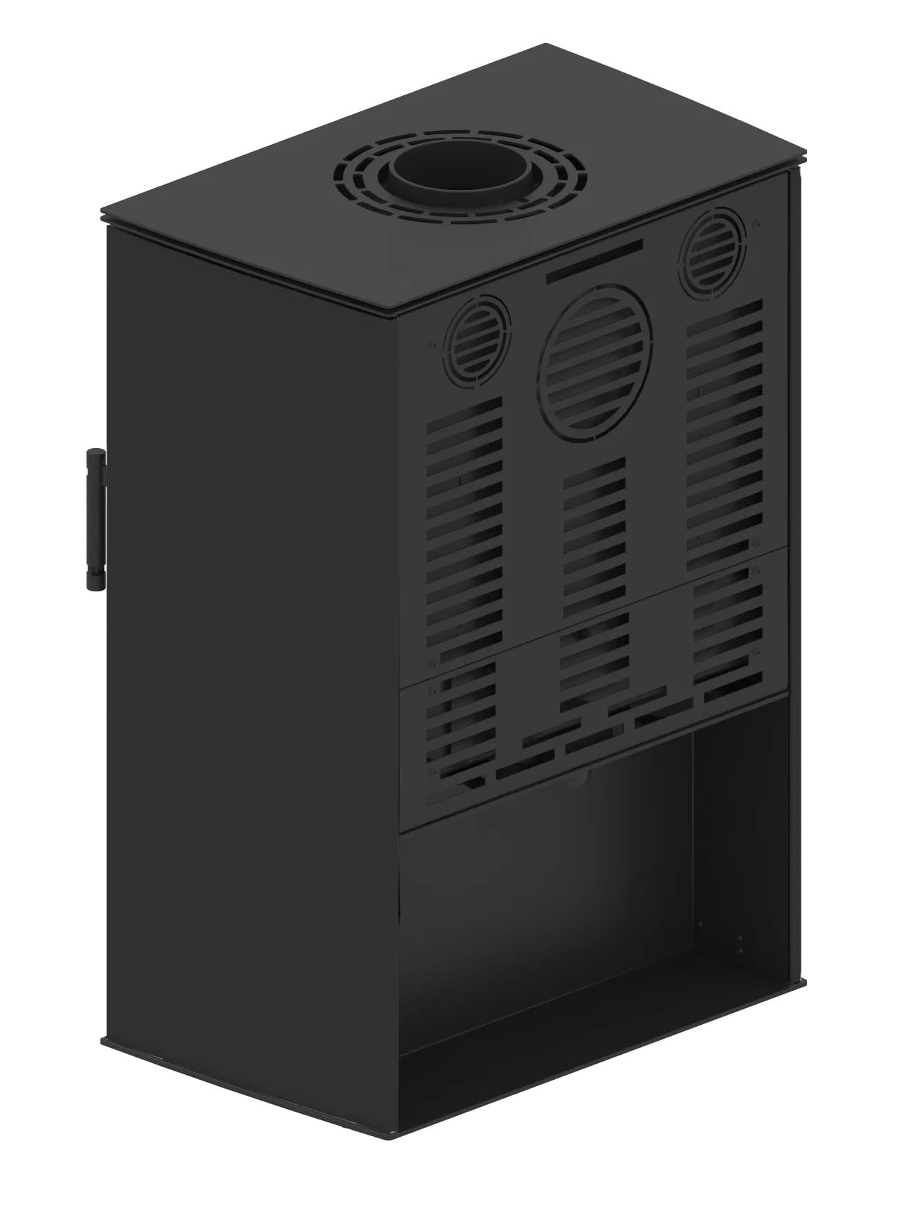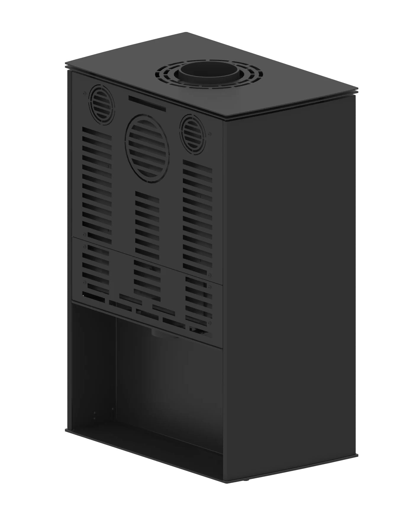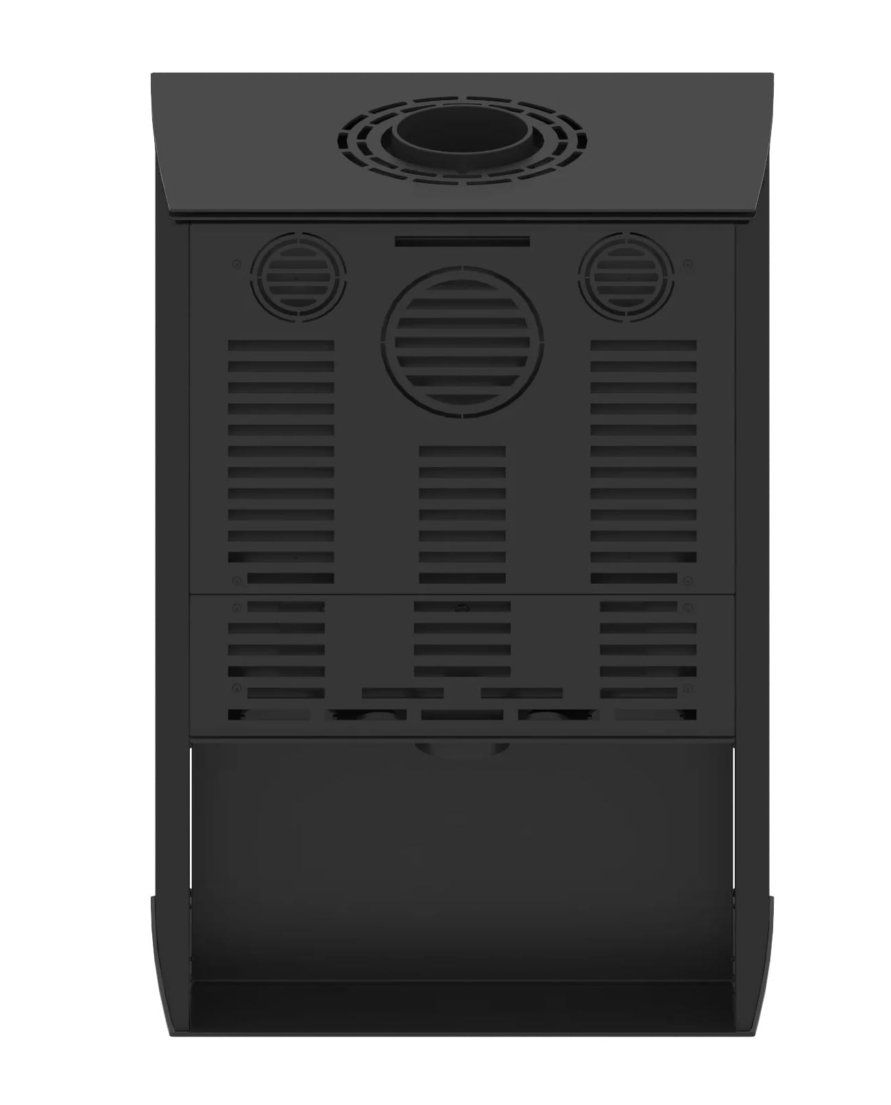 Zastosowanie wytrzymałego, żeliwnego rusztu gwarantuje długą żywotność. Bezpośrednio pod rusztem znajduje się łatwo demontowalny popielnik charakteryzujący się ponadprzeciętną objętością. Konstrukcja kominka wolnostojącego LUPO M umożliwia montaż wylotu spalin zarówno do tylnej, jak i górnej ściany.