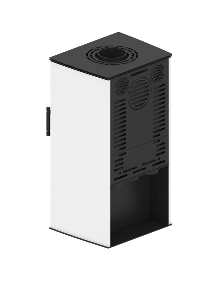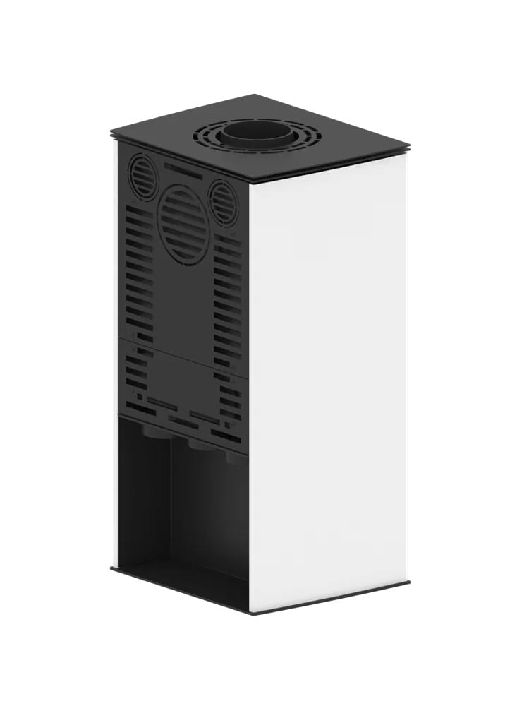 Najmniejszy piec opalany drewnem z serii LUPO, czyli model S jest wyposażony w łatwo wyjmowany popielnik zapewniający komfortowe użytkowanie. Bezpośrednio nad nim znajduje się solidny ruszt wykonany z żeliwa. Sposób montażu wylotu spalin może być dostosowany do indywidualnych potrzeb użytkownik. Konstrukcja kominka wolnostojącego umożliwiają podłączenie wylotu spalin zarówno w tylnej, jak i w górnej części solidnego korpusu.