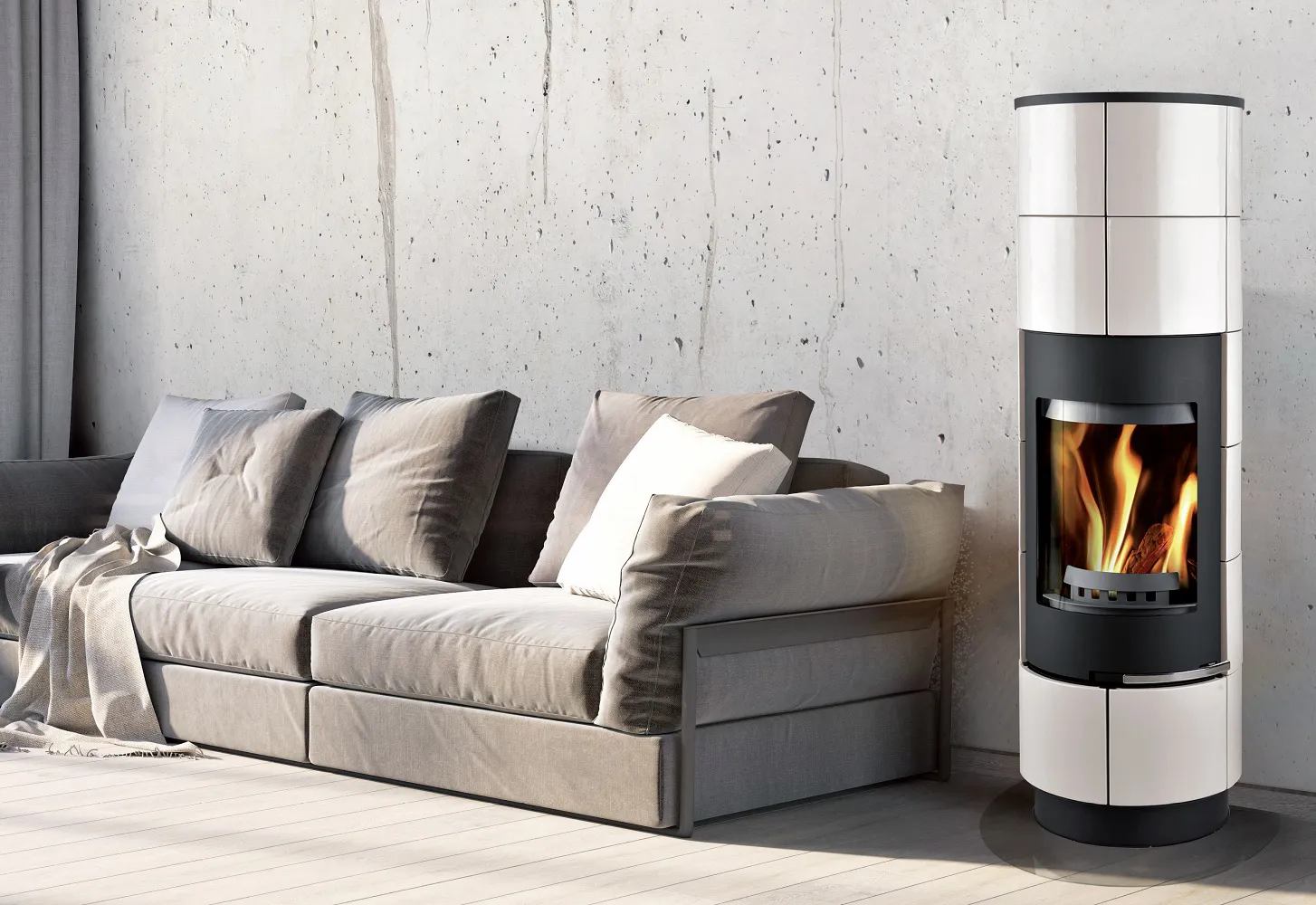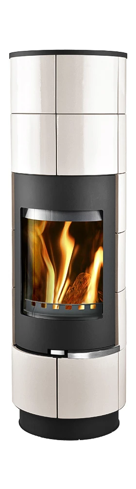 Wnętrze wyłożone wermikulitem dla zapewnienia skutecznego i czystego spalania drewna. Wykonany z blachy pomalowanej proszkowo na kolor czarny oraz pięknych białych kafli. Idealnie wpasowuje się w nowoczesne i minimalistyczne wnętrza. Zintegrowany panel konwekcyjny umożliwia umiejscowienie pieca w bliskiej odległości od ściany.